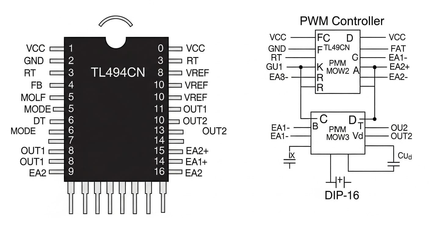 TL494CN — это не хайповая микросхема с AI внутри, а проверенный временем ШИМ-контроллер со строго определёнными параметрами. Вот что важно знать, если вы не хотите спалить её на первом же запуске: